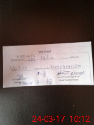 | School Visited by School Health & Nutrition Supervisor (No. of Visits) | 1 | Name1: | Yasir | Name2: | |