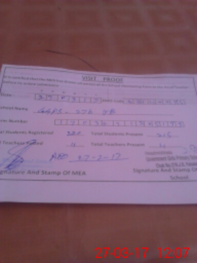 | Attendance Register | Head Teacher | MEA with School | Visit Proof |