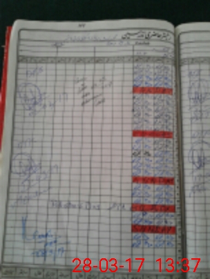 | CNIC | Full Name | Designation | R/C | Absence During Last Calender Month |