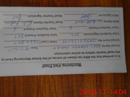 | Certified that this School was Inspected by the Undersigned MEA/DMO Today and the Information Stated Above is as Per Record. | |||||