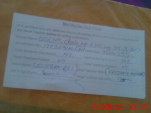 | EMIS Code: 35430755 | Name of School: GGCMS CHAK NO 6 UCC | |||