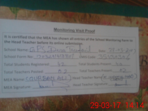 | EMIS Code: 35430306 | Name of School: GPS DERA TUFAIL | |||