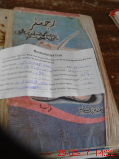 | School Visited by School Health & Nutrition Supervisor (No. of Visits) | 1 | Name1: | Ali Ahmed Zia | Name2: | Nil |