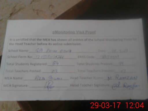 | Certified that this School was Inspected by the Undersigned MEA/DMO Today and the Information Stated Above is as Per Record. | |||||