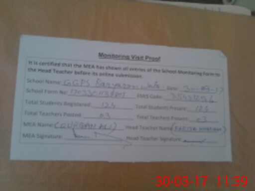 | Attendance Register | Head Teacher | MEA with School | Visit Proof |