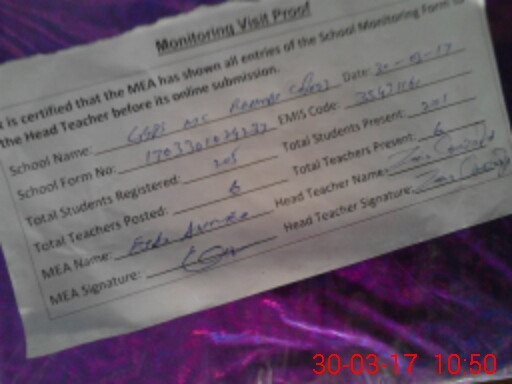 | Attendance Register | Head Teacher | MEA with School | Visit Proof |