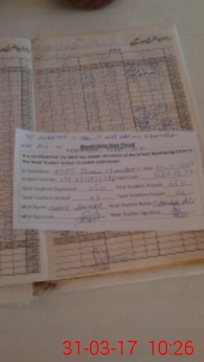 | Attendance Register | Head Teacher | MEA with School | Visit Proof |