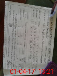 | Monitoring Date: 01-04-2017 | Start Time: 01-04-2017 11:52 AM | End Time: 01-04-2017 01:27 PM | Name of MEA: SH**** AH**** | |