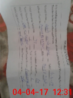 | Monitoring Date: 04-04-2017 | Start Time: 04-04-2017 11:59 AM | End Time: 04-04-2017 12:33 PM | Name of MEA: Mu**** Sa**** BN**** 33 | |