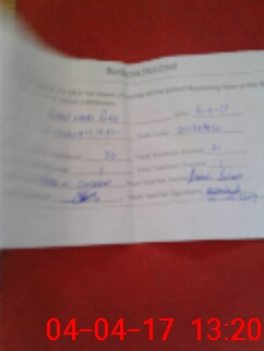 | Monitoring Date: 04-04-2017 | Start Time: 04-04-2017 01:05 PM | End Time: 04-04-2017 01:23 PM | Name of MEA: Mu**** Sa**** BN**** 33 | |