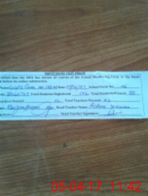 | Attendance Register | Head Teacher | MEA with School | Visit Proof |
