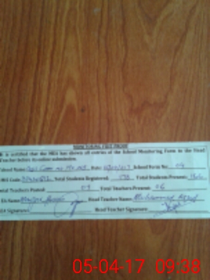 | Attendance Register | Head Teacher | MEA with School | Visit Proof |