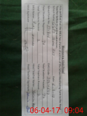 | Attendance Register | Head Teacher | MEA with School | Visit Proof |