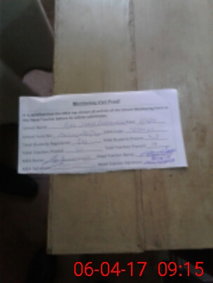| Attendance Register | Head Teacher | MEA with School | Visit Proof |