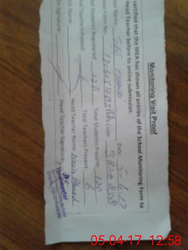 | Attendance Register | Head Teacher | MEA with School | Visit Proof |