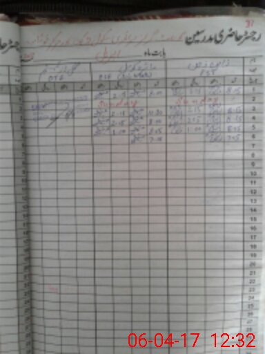 | CNIC | Full Name | Designation | R/C | Absence During Last Calender Month |