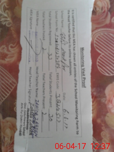 | Attendance Register | Head Teacher | MEA with School | Visit Proof |