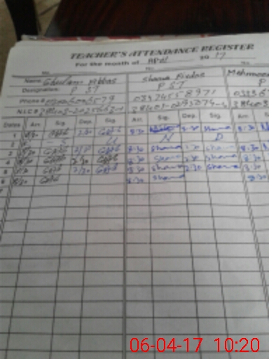 | Name: IF**** BA**** Designation: (School Headmaster's/Headmistress's) PST Phone/Cell Number: 03**** |