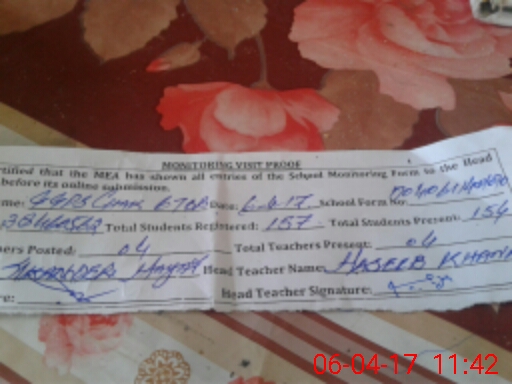 | Attendance Register | Head Teacher | MEA with School | Visit Proof |