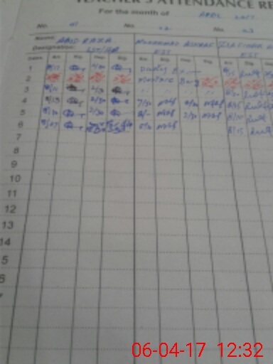| CNIC | Full Name | Designation | R/C | Absence During Last Calender Month |