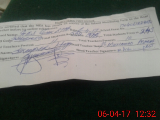 | Attendance Register | Head Teacher | MEA with School | Visit Proof |