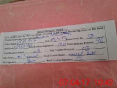 | Attendance Register | Head Teacher | MEA with School | Visit Proof |