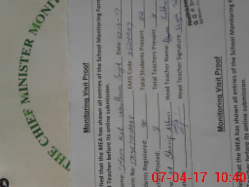 | Attendance Register | Head Teacher | MEA with School | Visit Proof |