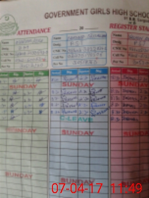 | CNIC | Full Name | Designation | R/C | Absence During Last Calender Month |