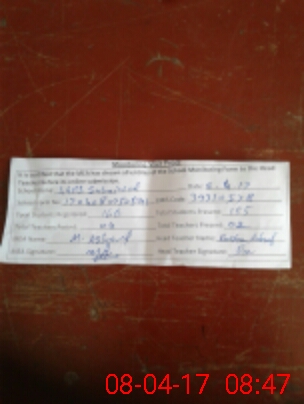 | Attendance Register | Head Teacher | MEA with School | Visit Proof |