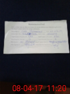 | Monitoring Date: 08-04-2017 | Start Time: 08-04-2017 10:49 AM | End Time: 08-04-2017 11:30 AM | Name of MEA: MU**** RA**** (R**** | |