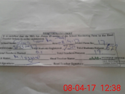 | Attendance Register | Head Teacher | MEA with School | Visit Proof |