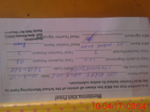 | Certified that this School was Inspected by the Undersigned MEA/DMO Today and the Information Stated Above is as Per Record. | |||||