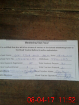 | Attendance Register | Head Teacher | MEA with School | Visit Proof |