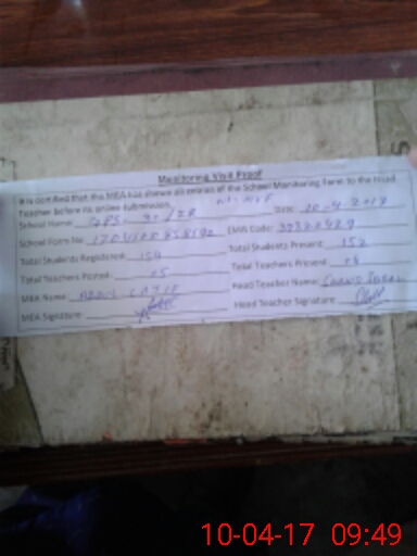 | Attendance Register | Head Teacher | MEA with School | Visit Proof |