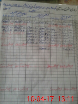 | CNIC | Full Name | Designation | R/C | Absence During Last Calender Month |