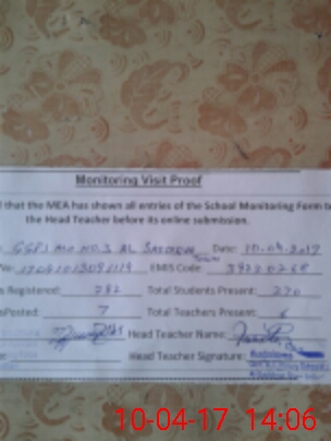 | Attendance Register | Head Teacher | MEA with School | Visit Proof |