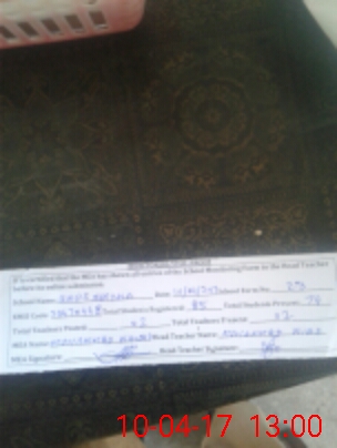 | Attendance Register | Head Teacher | MEA with School | Visit Proof |