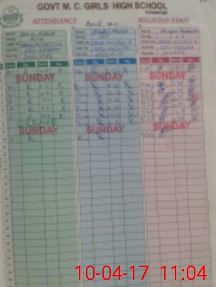 | CNIC | Full Name | Designation | R/C | Absence During Last Calender Month |