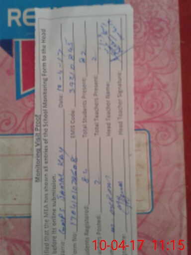 | Attendance Register | Head Teacher | MEA with School | Visit Proof |