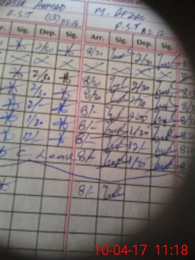 | CNIC | Full Name | Designation | R/C | Absence During Last Calender Month |