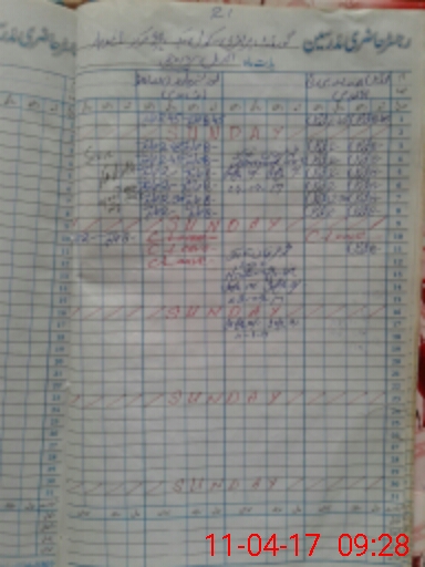 | CNIC | Full Name | Designation | R/C | Absence During Last Calender Month |