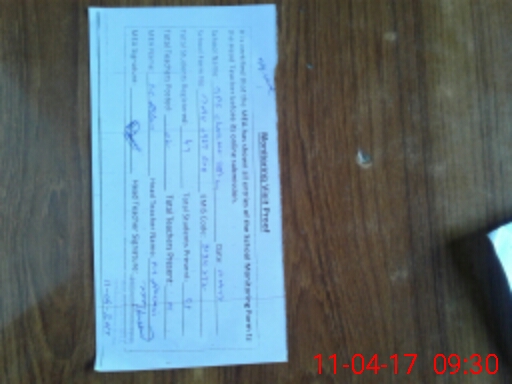 | Attendance Register | Head Teacher | MEA with School | Visit Proof |