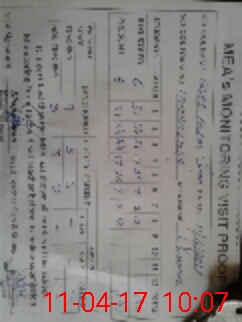 | Monitoring Date: 11-04-2017 | Start Time: 11-04-2017 08:46 AM | End Time: 11-04-2017 10:10 AM | Name of MEA: SH**** AH**** | |