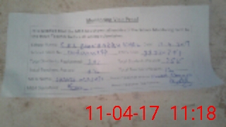 | Monitoring Date: 11-04-2017 | Start Time: 11-04-2017 10:52 AM | End Time: 11-04-2017 11:24 AM | Name of MEA: SH**** MA**** (R**** | |