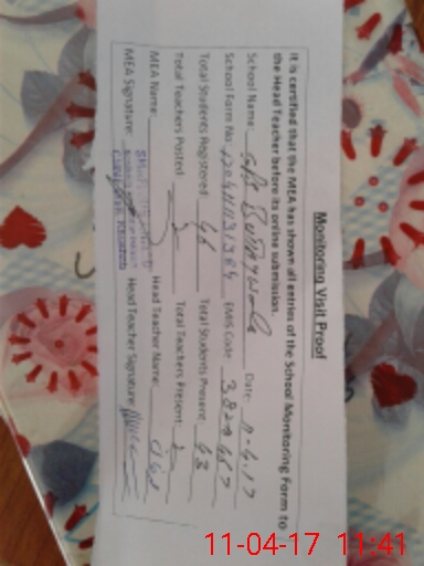 | Attendance Register | Head Teacher | MEA with School | Visit Proof |