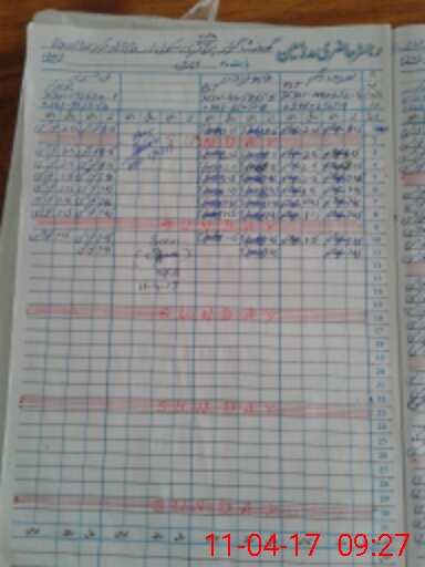 | CNIC | Full Name | Designation | R/C | Absence During Last Calender Month |