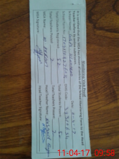 | Attendance Register | Head Teacher | MEA with School | Visit Proof |
