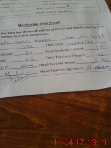 | Attendance Register | Head Teacher | MEA with School | Visit Proof |