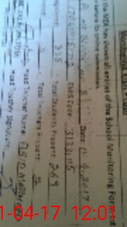 | Monitoring Date: 11-04-2017 | Start Time: 11-04-2017 11:36 AM | End Time: 11-04-2017 12:01 PM | Name of MEA: Mu**** Ja**** An**** | |