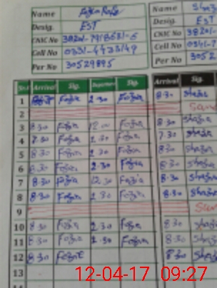 | CNIC | Full Name | Designation | R/C | Absence During Last Calender Month |